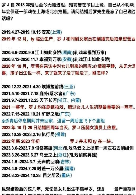 围绕两人是“分居还是恩爱”,网络上一波网友扒行程、算时间线,觉得罗晋工作太忙,陪家太少。