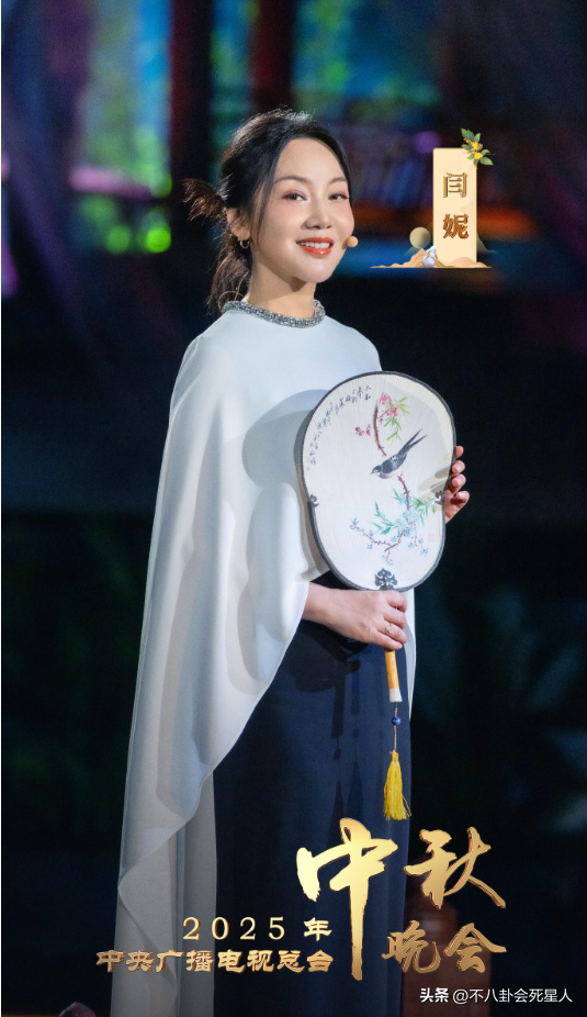 几个角度的镜头扫过,都显得周笔畅疲惫、老气,没什么精气神。另外,她的礼服也不符合中秋的氛围,蓝色配白色,色调过冷,款式也太老了。