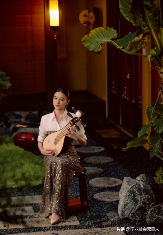 另一套造型依旧稳定发挥,亮片半裙配白色衬衫,低头抚琴的中式美感,完美衬托出了她的大青衣地位。